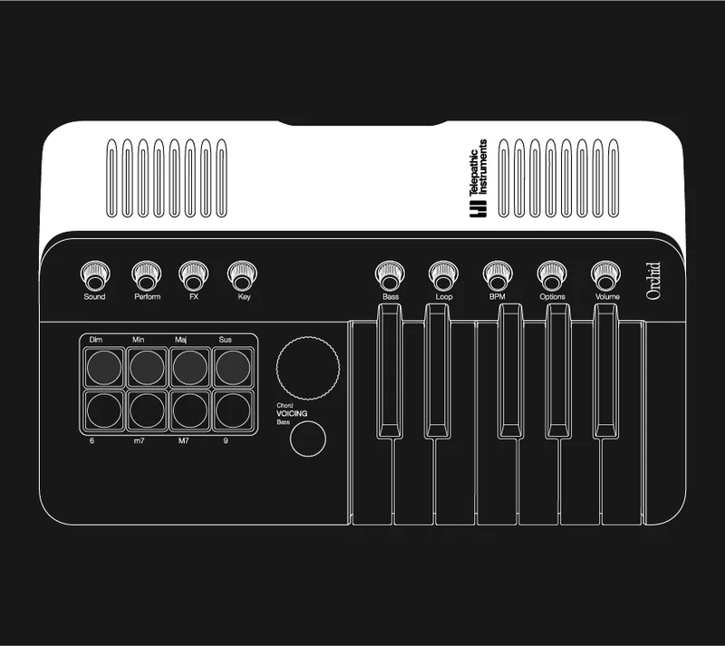 Orchid’s synthesiser engine allows musicians to create sounds from retro keyboards to expansive textures. With onboard effects, a Loop mode, and chord modifiers, Orchid enables musicians to layer ideas, animate chords, and build compositions—all while staying attuned to their creativity.